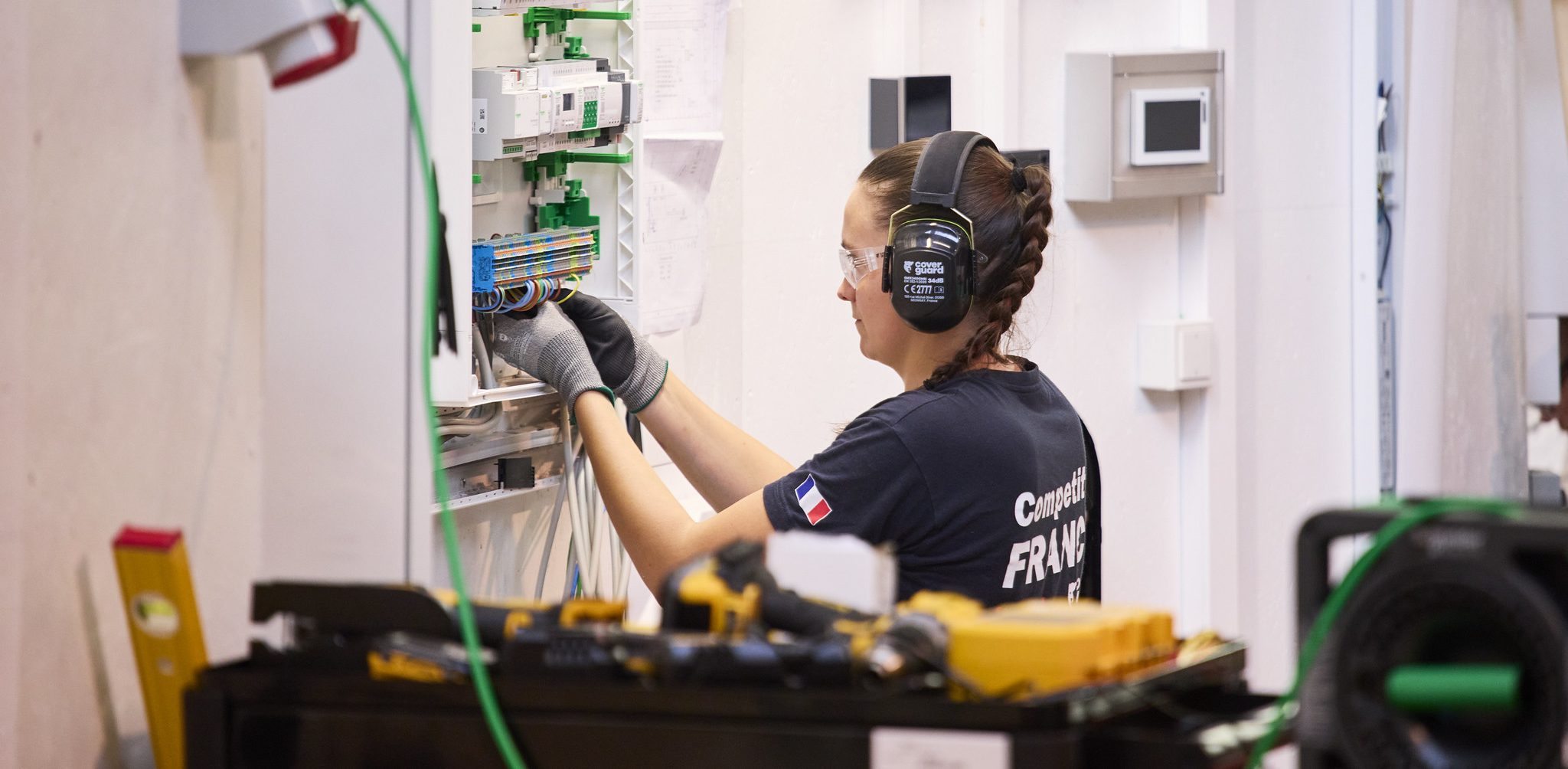 La compétition : Les compétiteurs ont à montrer leurs compétences dans 3 directions différentes : procéder à une installation comme ils le feraient dans un domicile (éclairage, prise de courant, signaux de contrôle, …), réaliser la maintenance d’un appareil en recherchant les défauts et programmer, c’est-à-dire, concevoir le schéma permettant une installation qui fonctionne.
