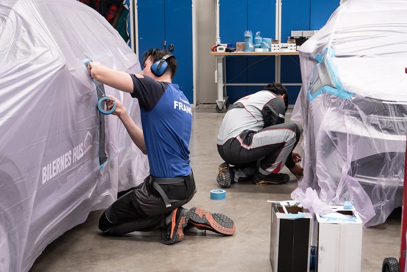 Pour certains travaux, ils doivent trouver le code couleur par diverses méthodes, mélanger les couleurs selon une formule prédéterminée ou non et pulvériser des cartes de couleur afin de vérifier si celle-ci est identique à la couleur et à la nuance d’origine. La nature de leur travail les oblige à respecter certains délais, notamment les temps de séchage, et à entreprendre des travaux sur plusieurs véhicules à la fois. Ils peignent les véhicules à l’intérieur d’une cabine de pulvérisation hermétique afin de protéger l’environnement contre les produits nocifs.